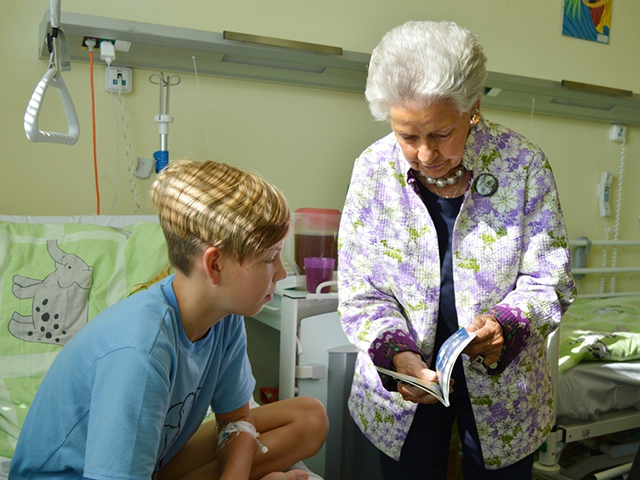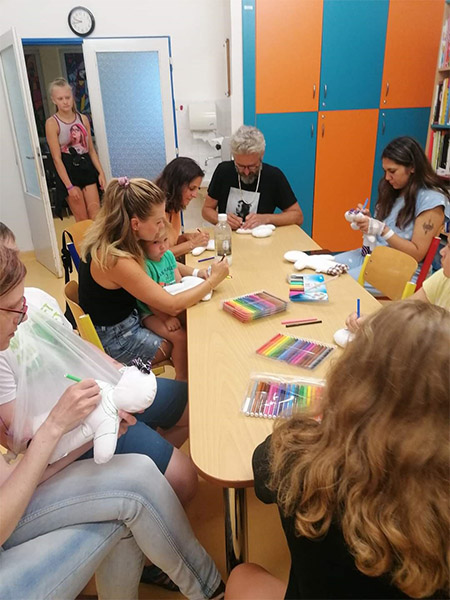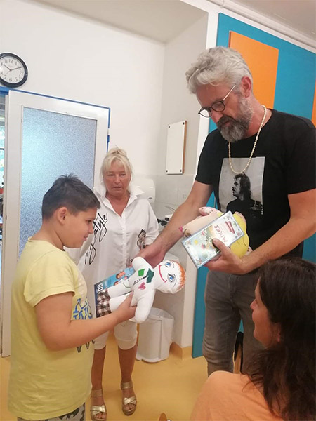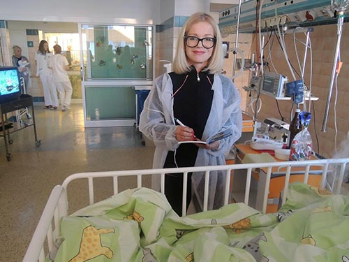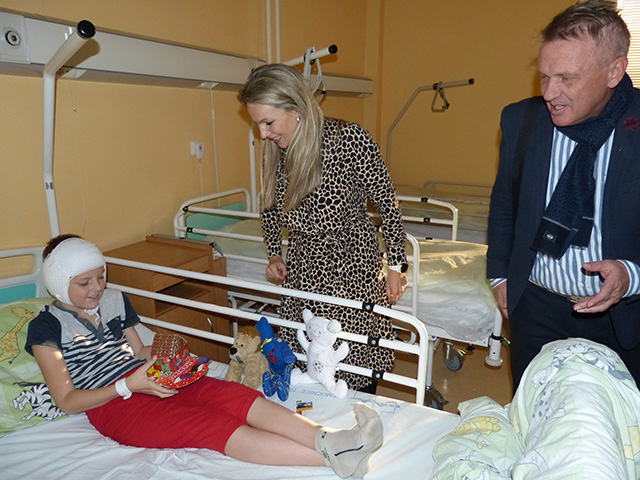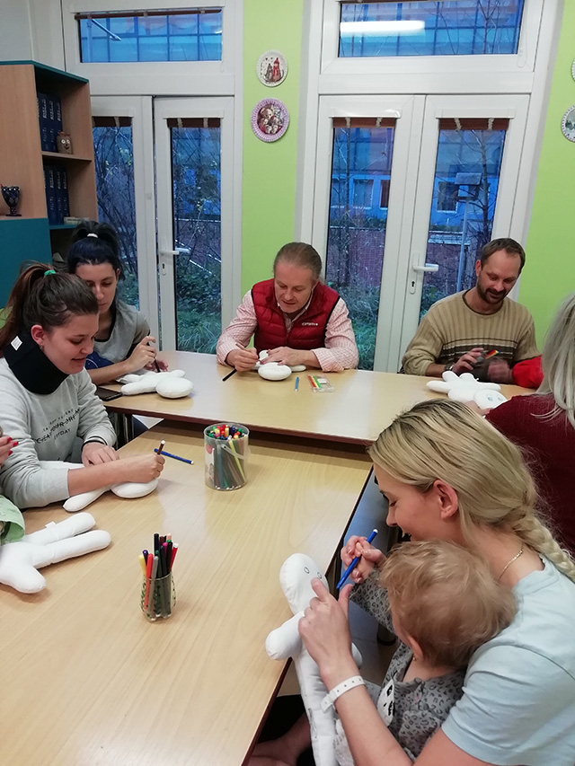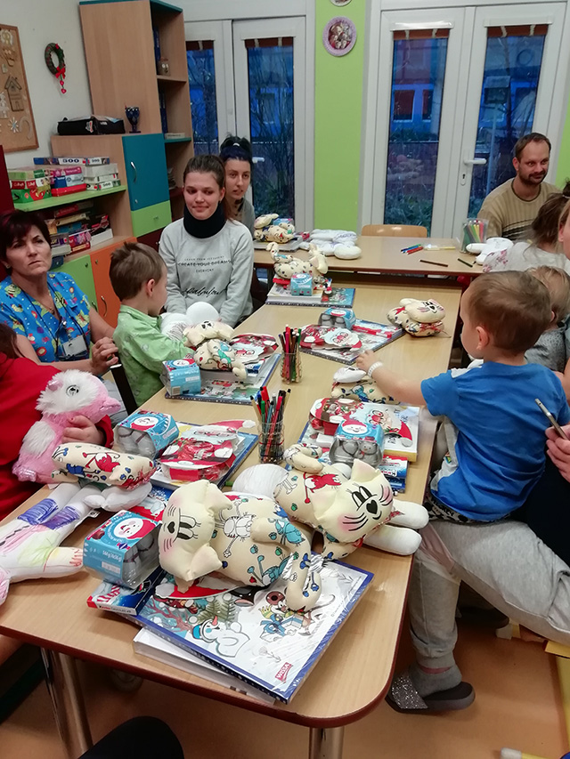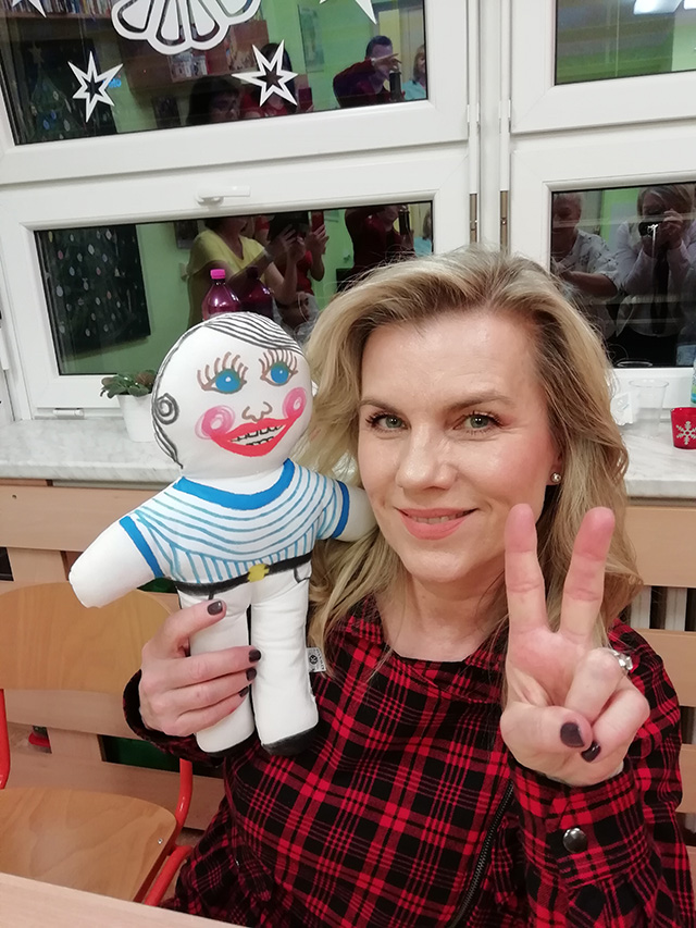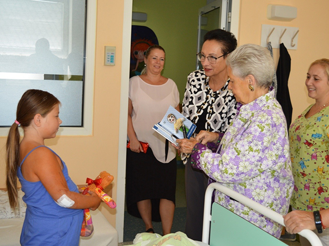 Prezidentka sdružení Eva Pastušková rozdává osobně společně s významnými hosty na dětských odděleních nemocnic v moravskoslezském kraji dětem různé dary a bílé látkové panenky, které si mohou podle sebe samy vymalovat.