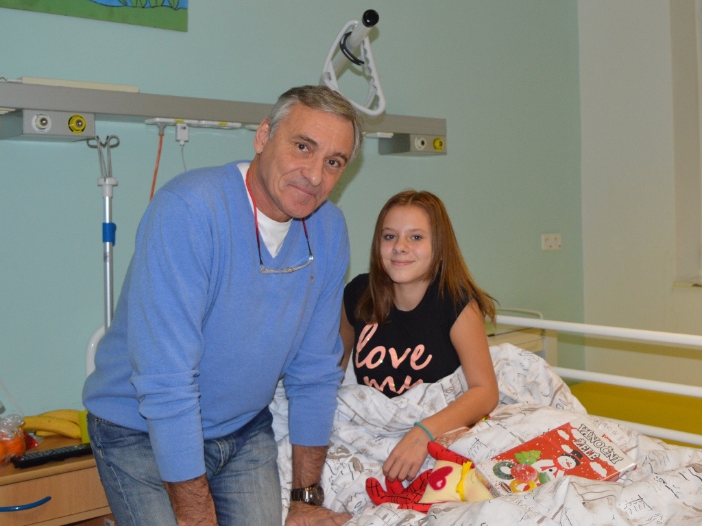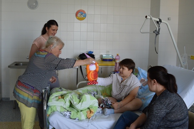 Zkrátka nepřišli ani pacienti, kteří ze zdravotních důvodů museli zůstat na lůžku. Míša Badinková procházela jednotlivé pokoje a přínášela do nich kromě panenek, polštářků "Hajánků", sladkostí i hromadu dobré nálady.