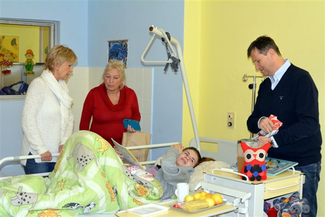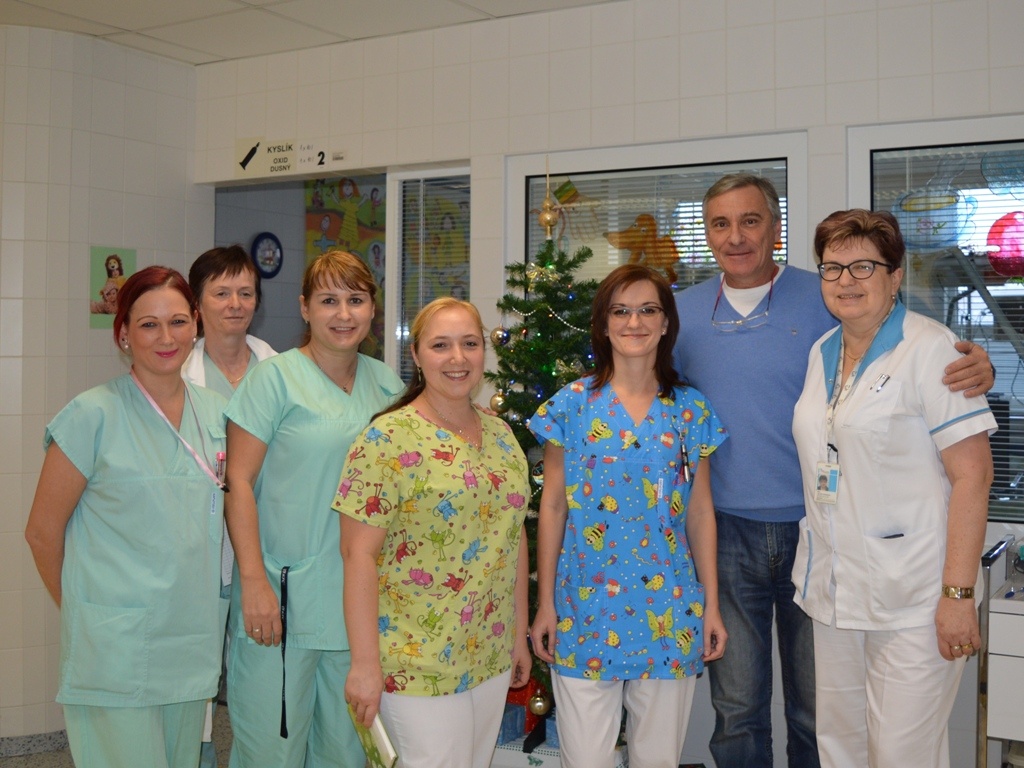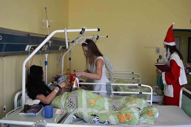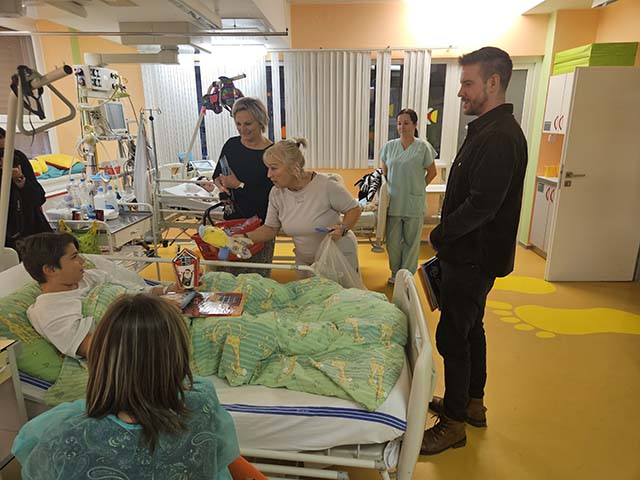 Dne 23.prosince - Den před štědrým dnem jsme navštívili děti na dětském oddělení nemocnice ve Frýdku-Místku. Obdarovali jsme děti, které musejí ze zdravotních důvodu zůstat na štědrý den v nemocnici. Rozdali jsme dětem kolekce, látkové hračky, sladkosti a také jim poslala své CD Leona Machálková. Děti měly s dárku velkou radost a rodiče byli mile překvapeni.