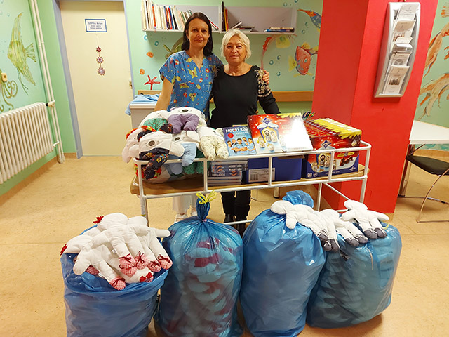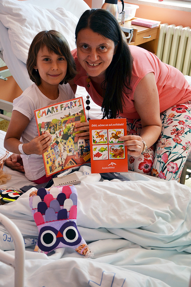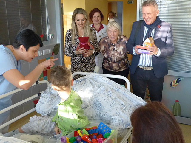 Teď už se mohou děti těšit na své oblíbené panenky dětem a fixy i další drobnosti, které naše občanské sdružení předává společné s pomocí známých osobností a umělců v nemocnicích našeho regionu.