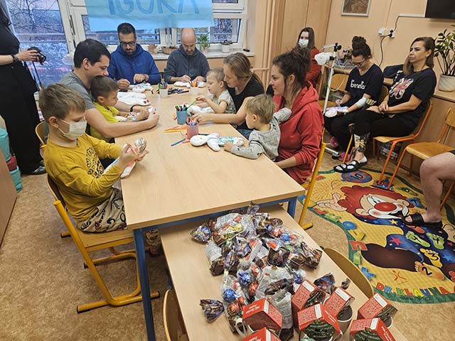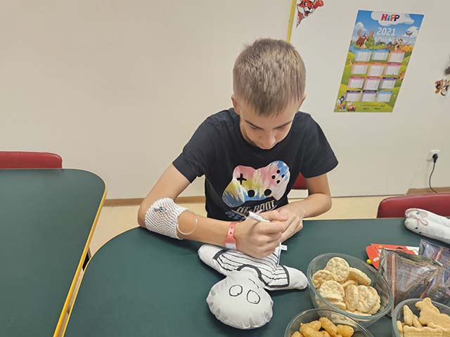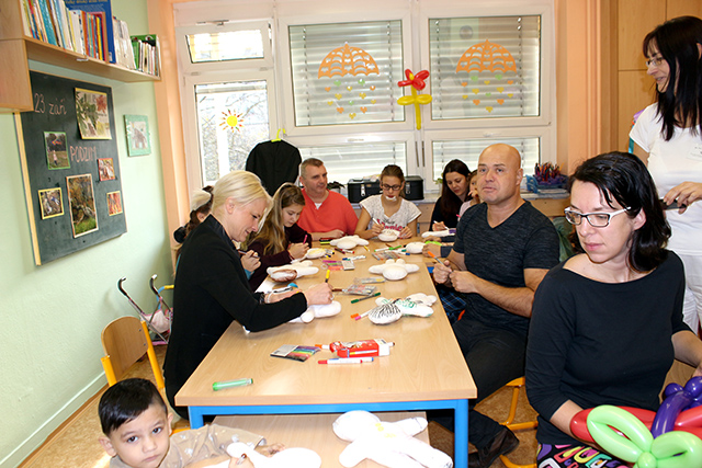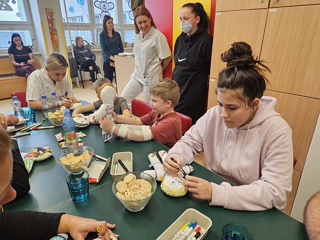 Jak jak je zvykem na tomto oddělení, přišli do společenské místnosti malí i větší pacienti dětského oddělení namalovat si svou vlastní panenku společně se známou osobností. Nechyběly ani dárečky a štědrá velikonoční nadílka, která však bude dělat větší radost až doma po zlepšení zdravotního stavu.