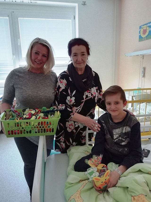 Velice příjemným doplněním tohoto dopoledne byla i návštěva paní Lindy Filuszové, která zastupuje našeho hlavního sponzora - firmu Innogy a paní Valentové z vazební věznice Ostrava, která donesla mnoho nových postaviček a origami, které pod její patronátem vyrábějí zadržení podezřelí. Tyto postavičky, určené hlavně pro menší pacienty, netradičním způsobem zpříjemňují jejich pobyt v nemocnici.