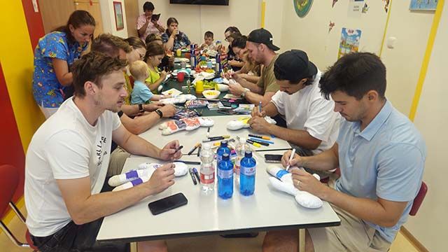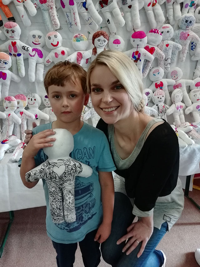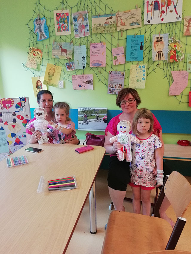 Eva Pastušková přinesla se svým týmem také další zásobu panenek. Ty následně putují ke každému malému pacientovi, který si hračku může dle vlastní fantazie vybarvit a panenka se pak stává parťákem při pobytu v nemocnici.