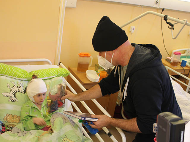 11.8.2022 Saša Rašilov rozdával dětem panenky v nemocnici Ostrava Vítkovice...