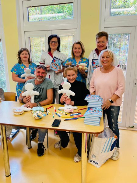 11.8.2022 Opět krásné čtvrteční odpoledne v nemocnici Ostrava Vitkovice(Agel) u pana primáře MUDr. Jana Boženskeho (garanta naší panenky). Tentokrát s charismatickým, milým hercem Sašou Rašilovem jsme předali dětskému oddělení 100ks panenek. Děti s panem Sašou Rašilovem malovaly panenky a musím říct, že byly opravdu krásné. Samozřejmě od pana Rašilova dostaly za odměnu dárečky i vlastnosručně podespanou knihu "Modrý kód". Děkujeme také paní Lindě Filuszove z Innogi za podporu projektů panenka dětem.