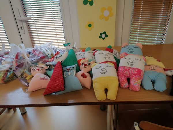 Jsme rádi, že budeme zase dávat panenky a hračky na dětská oddělení nemocnic. Během pandemie coronaviru šila ženská věznice v Opavě roušky z bílé antialergické látky pro sestřičky, lékaře a také pro malé pacienty z barevných látek. Věznice v Opavě ušila za podpory vedení Opavské věznice a p. Králové přes tisíc bílých roušek a dvěstě dětských barevných. Chtěla bych poděkovat firmě Inoggy za podporu k šití bílých antialergických roušek z látky určené na panenky a firmě Kampet Kamile a Petrovi Zlámalovým za barevné látky na dětské roušky.