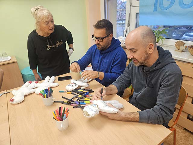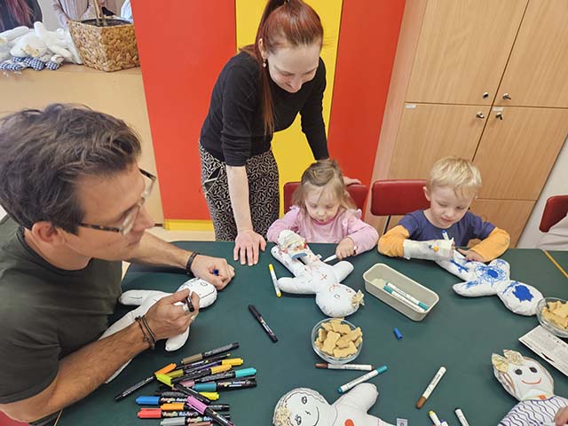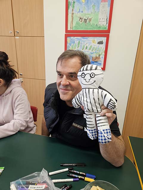29.2.2024 Miroslav Etzler a Naďa Valová kreslili panenky s dětmi na dětském oddělení ve Vítkovické nemocnici...
