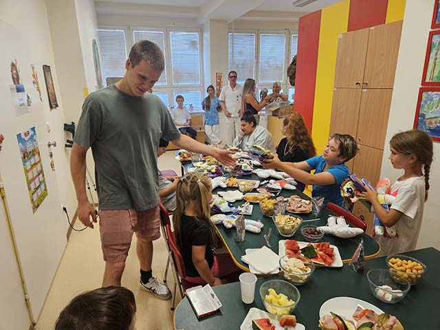 Podle slov primáře dětského oddělení MUDr. Jana Boženského je na provozu oddělení znát prázdninové období a aktuálně zde leží 15 dětí. „Někteří pacienti ale museli zůstat v izolaci a návštěvy se tak mohly zúčastnit například děti, které se doléčují z proběhlého respiračního onemocnění,“ upřesnil primář Boženský.