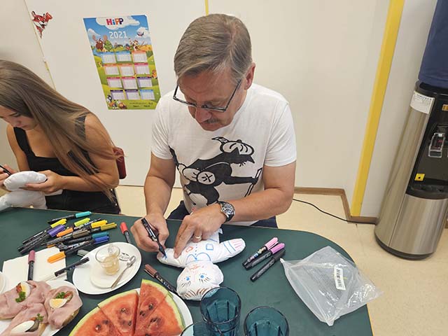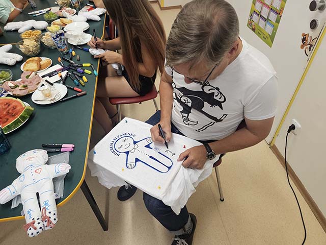4.8.2023 Marek Němec rozdával a kreslil panenky na dětském oddělení v nemocnici Ostrava Vítkovice...