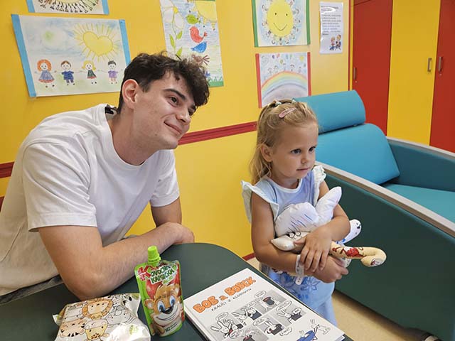 23.7.2024 Dětské oddělení Nemocnice AGEL Ostrava-Vítkovice zažilo výjimečnou událost. Známý herec David Matásek potěšil malé pacienty svou návštěvou.